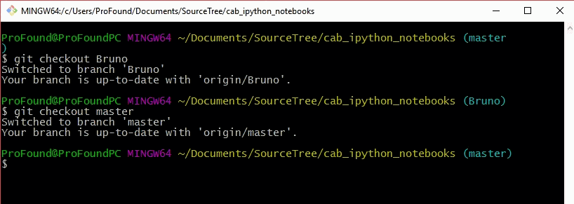 This switches the code to your development branch on your local machine. Upon checkout, the folder structure and file content of your code project folder on your machine will be converted to the state of your development branch.