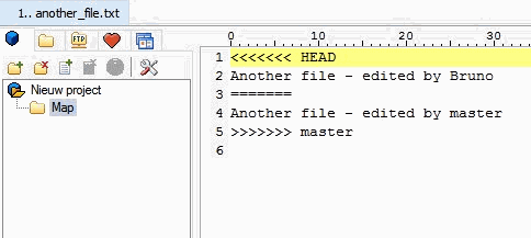 If a new version of the master branch is released (e.g. when all the changes for a new release are completed), you should bring the code on your developer branch back in line with the master. As an example, the file another_file.txt is added to the master branch and should be brought into the developer's branch.