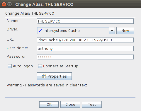 SQuirreL is de enige database browser die we zijn tegengekomen die Caché ondersteunt. Je kunt de onderstaande connectie-parameters gebruiken. Het wachtwoord is eveneens bekend bij T-HL IT.